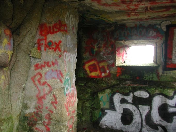 Au nord-ouest, se trouve un bunker doté d’une porte et de deux fenêtres, l’une orientée vers le nord, la seconde vers le sud.