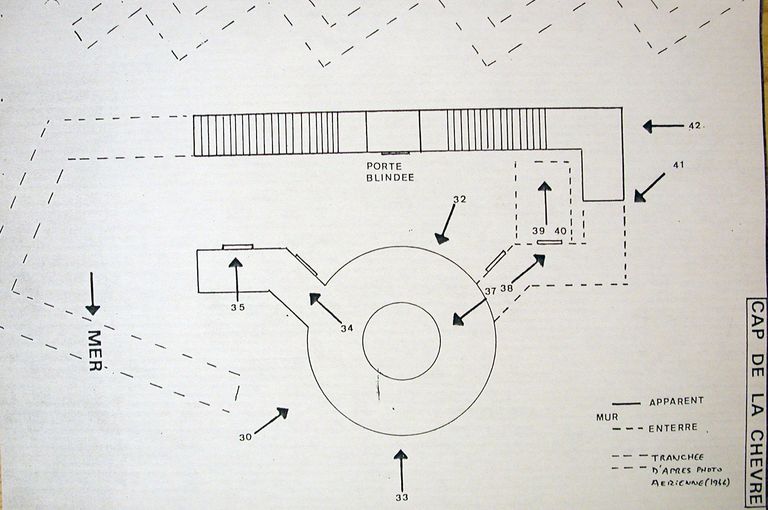 Situation : Batterie du Cap de la Chèvre, à proximité du Sémaphore - à l'extrémité sud-ouest du Cap.