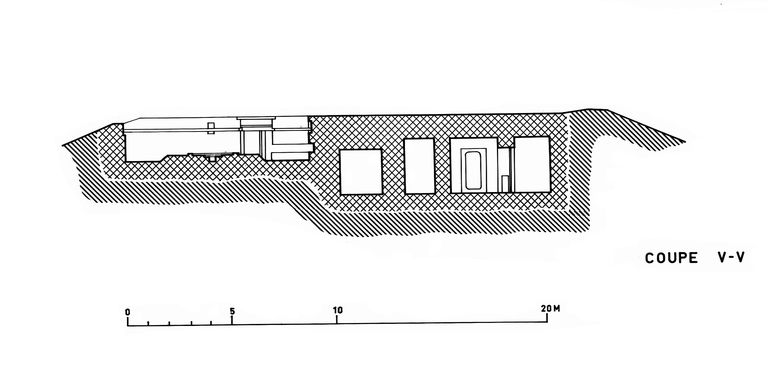 - Verticale : 1,10 mètre de béton armé au-dessus des locaux. 1,50 mètre au-dessus de la soute à obus.