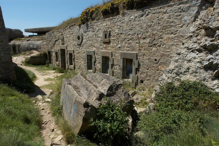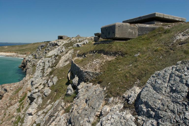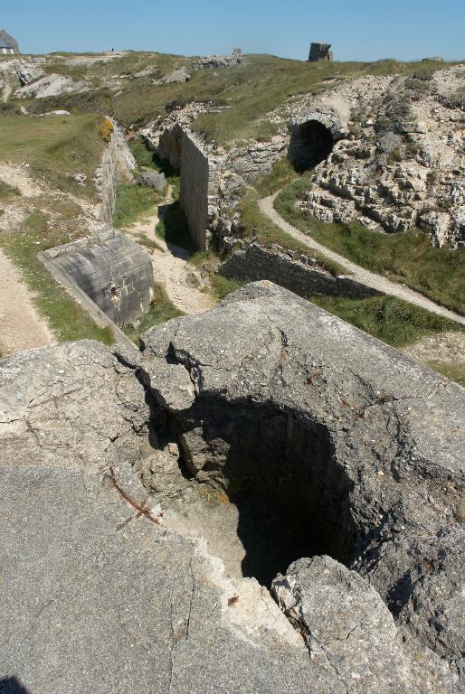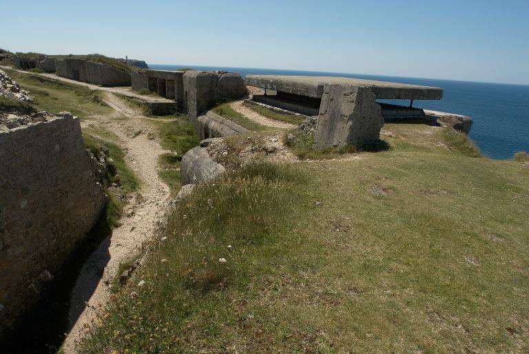 Batteries (4 canons G de 24 cm modèle 1876, 4 canons de 19 cm modèle 1875-1876, 4 canons G de 95 mm sur affûts G de côte), poste de projecteur (Cr 345), Pointe du Toulinguet (Camaret-sur-Mer)