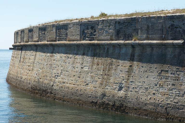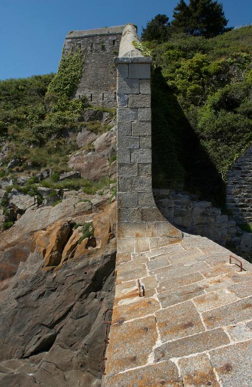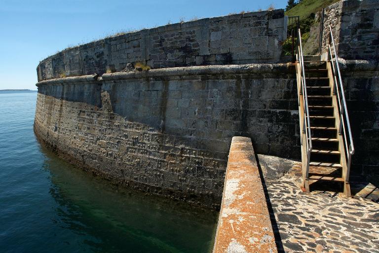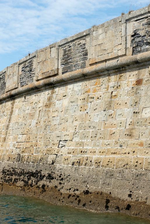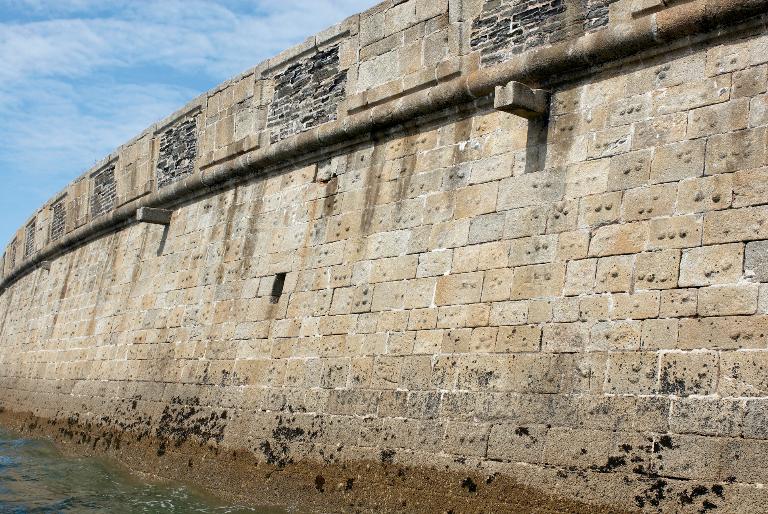 La batterie basse, en dépit de l’arasement de nombreux bâtiments après la Seconde Guerre mondiale, est l’élément le plus remarquable de cet ensemble fortifié. La maçonnerie de l’escarpe en pierres de taille de granite montre un certain nombre de "boules" ou "pustules" en parement : éléments de décor, marques de tâcheron destinées à payer les ouvriers à la tâche ou marques d’assemblage des pierres cramponnées (ou "agrafées") au fer comme semblent le suggérer des pierres basculées à la mer ?