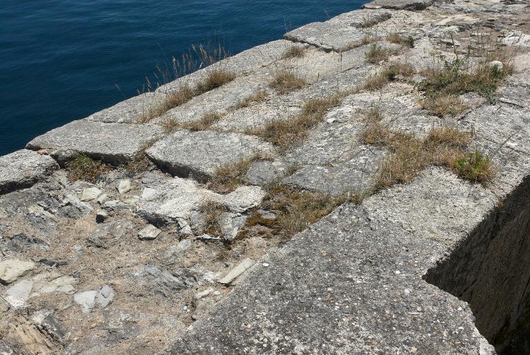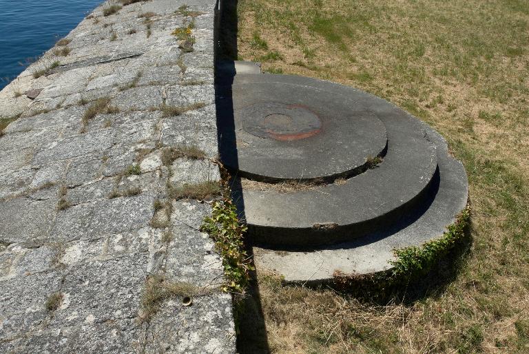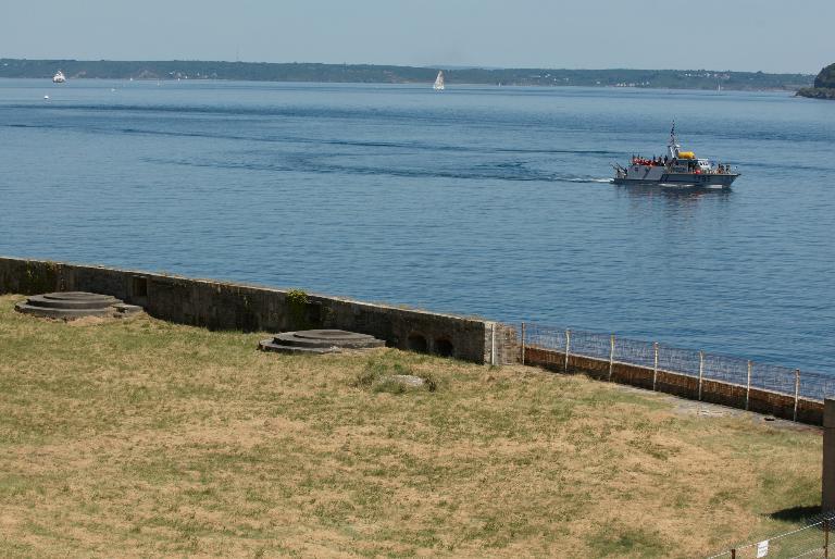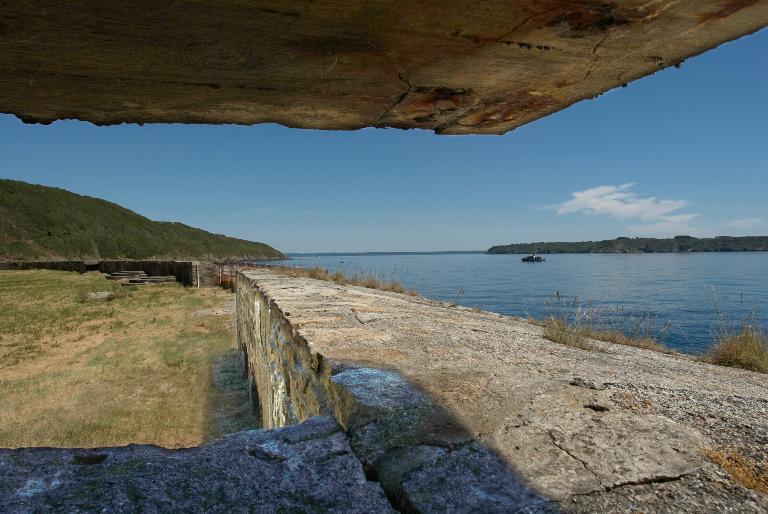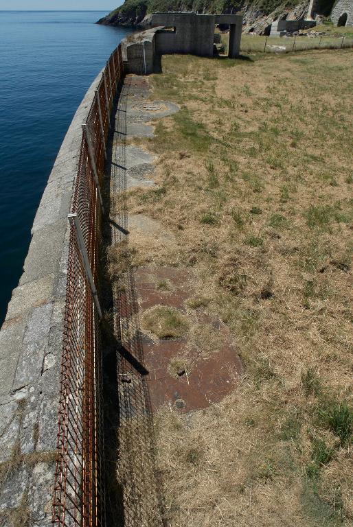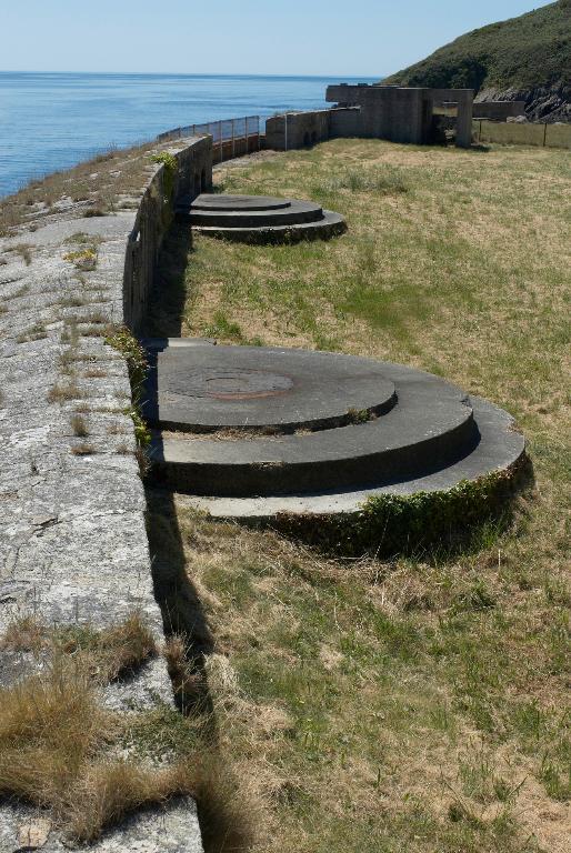 Plus haut sur la falaise, à l’est du fort vers le hameau de Quillihouarn, six canons de 100 mm sont implantés et servent de batterie annexe ; les sous-sellettes d’affût sont toujours en place.