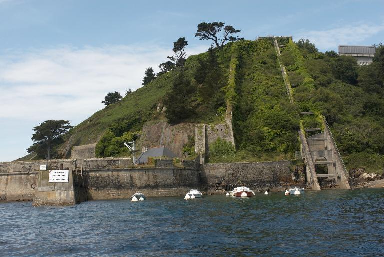 En 1878, une jetée est construite pour permettre le stationnement de canots porte-torpilles dans la petite anse du Mengant. Une batterie rasante de 32 cm est également construite au fond de l’anse dans le ravin du Mengant en 1885-1886.