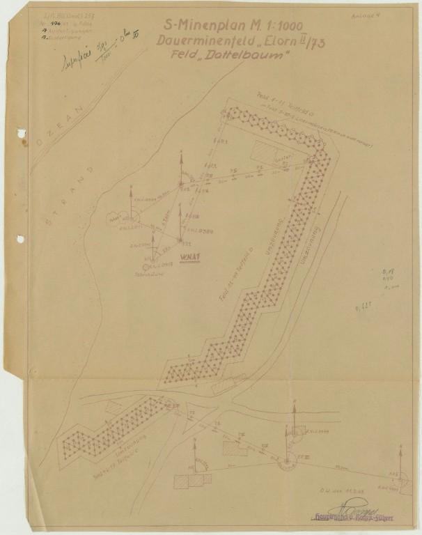 Selon les plans allemands de minage, les ensembles fortifiés numérotés "A 1", "A 5", "A 6" et "A 8" sont achevés au 12 mars 1943 ; les autres ensembles fortifiés du secteur sont encore en construction à cette date (im Bau). Un champ de mines numéroté Elorn II/73 et nommé "Dattelbaum" (dattier), composé de 337 engins de type S. Minen, Schrapnellminee, mines shrapnel ou bondissantes, protégeait l’ensemble fortifié "A 1".