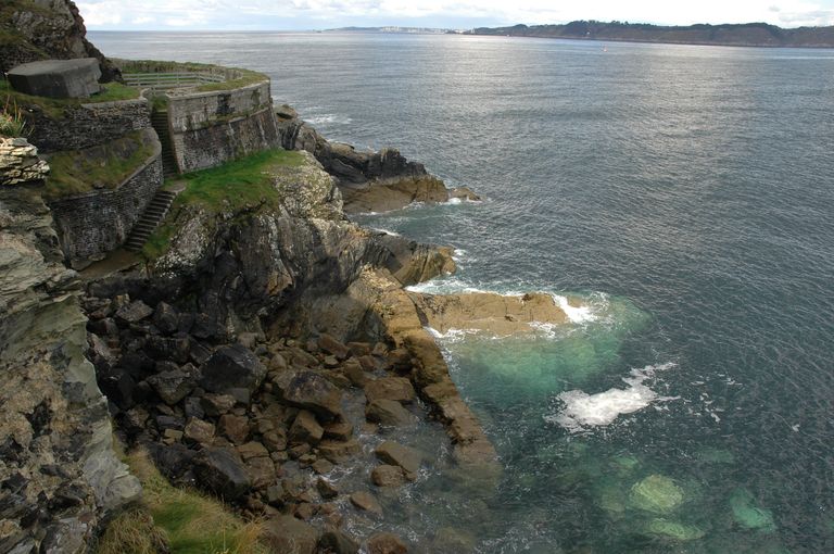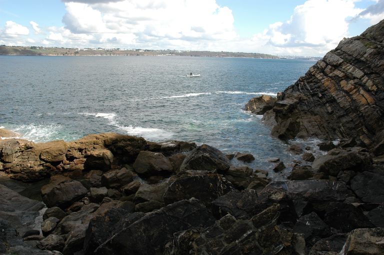 Composition géologique du site : plateau et falaise en schistes et quartzite brun-foncé de Plougastel.