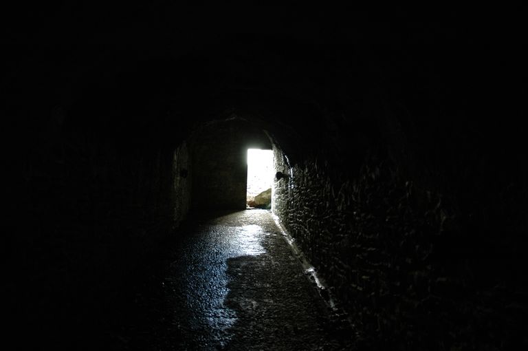Petite soute à munitions sous roc (repère D du plan) creusé dans le pied de la falaise : accès par tronçon de galerie coudée, pour éviter les coups directs.