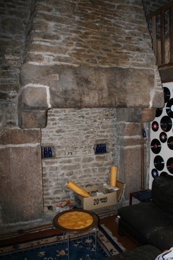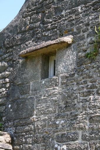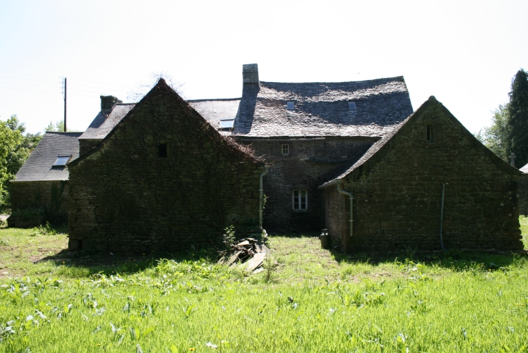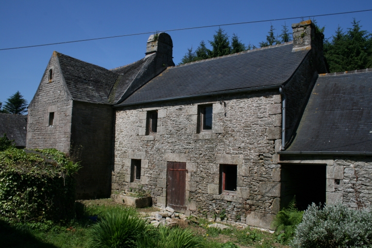 Logis ouest : espace du rez-de-chaussée à l´origine séparé par une cloison (écurie ?) ; cheminée monumentale en granite entourée de nombreuses niches murales ; escalier en vis placé dans l´épaisseur du mur, en pierre dans la partie inférieure, en bois dans la partie supérieure ; pièce à feu à l´étage (cheminée monumentale en granite, souche disparue) éclairée par deux petites fenêtres percées dans le pignon et surmontées de larmiers en granite. Puits semi-circulaire couvert de dalles de schiste.