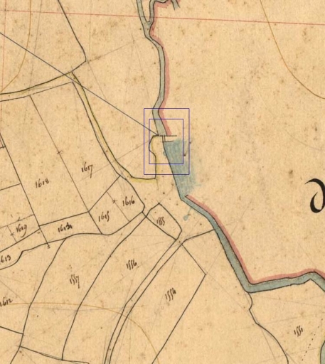 Pont en maçonnerie (deux piles à bec portant le tablier) figurant sur le cadastre de 1837, probablement érigé à la fin du 18e ou au début du du 19e siècle ; il assurait la liason entre le moulin à eau dit Moulin Neuf (commune de Saint-Thégonnec) et le bourg de Loc-Eguiner via le village de Guerbiguet.