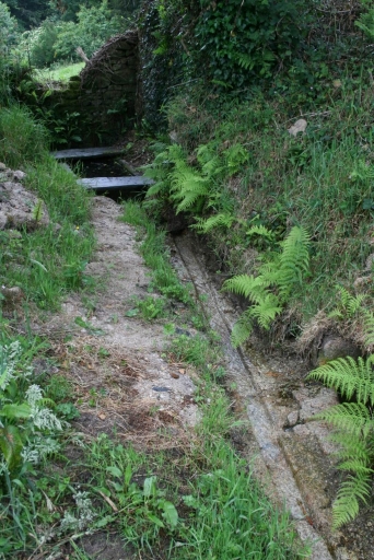 Atypique : la buanderie est associée à deux fontaines qui l´alimentent via un conduit en granite. Douet en granite. Murs goutteraux, toiture, cheminée et cuves disparues, pignon ruiné. Accessibilité : à proximité des habitations.