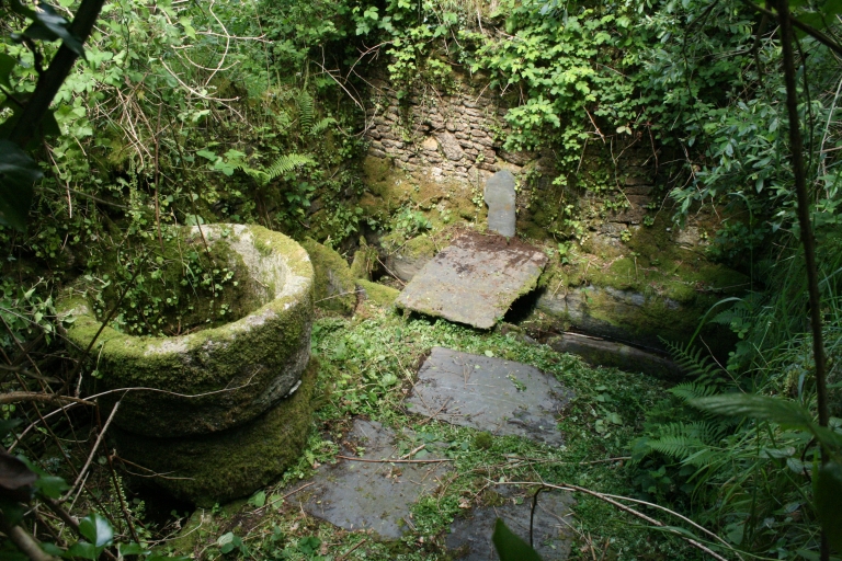 Charpente et toiture disparues. Murs, cuve, auge, douet, repamoirs et sol couvert de dalles de schiste en place. Accessibilité : à une centaine de mètre du village, au bord d´un chemin.