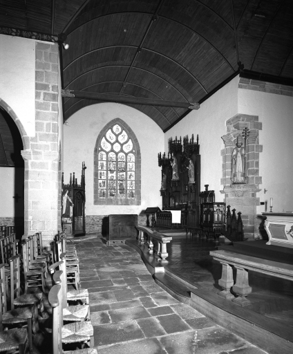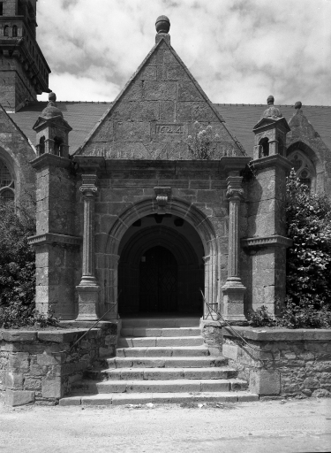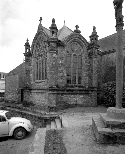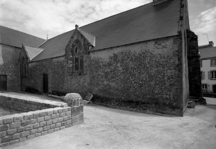 Edifice partiellement néogothique. Le chevet est du même style que ceux de Saint-Nicodème en Ploéven, de Ploaré et du Juch. Fissures au-dessus de l'arcade du bas-côté du transept nord. Edifice associé à une croix monumentale.