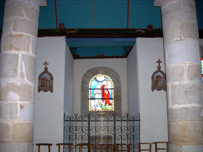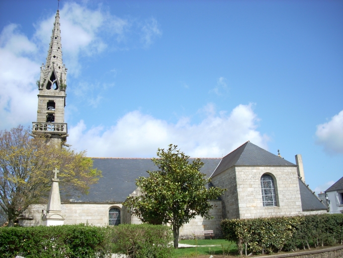 Edifice de style néogothique flamboyant. Le portail en anse de panier a été influencé par celui de Saint-Herbot (l'accolade est encadrée d'un faux gable qui coupe les pinacles) Edifice associé à un calvaire et à un monument aux morts. Etat sanitaire satisfaisant.