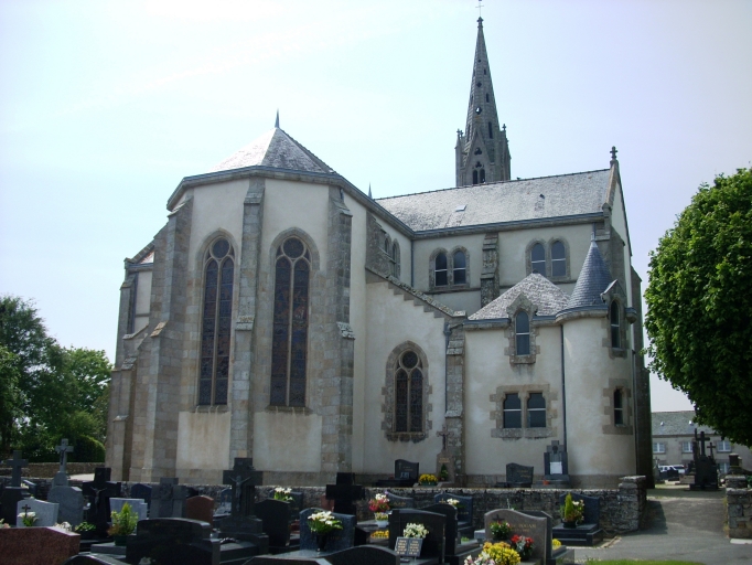 Edifice situé dans un enclos et associé à un cimetière, à un monument aux morts et à une croix monumentale. Sacristie flanquée d´une tour d´angle abritant un escalier en vis comme à Lannilis. Edifice proche de celui d´Hanvec, néogothique (13e siècle), comme Douarnenez et Moëlan-sur-Mer édifiés d'après les plans de Joseph Bigot dans les mêmes années, en collaboration avec son fils Gustave. Etat sanitaire correct mais il existe des problèmes de toiture, qui doit être refaite prochainement. Traces d´humidité sur le mur nord.
