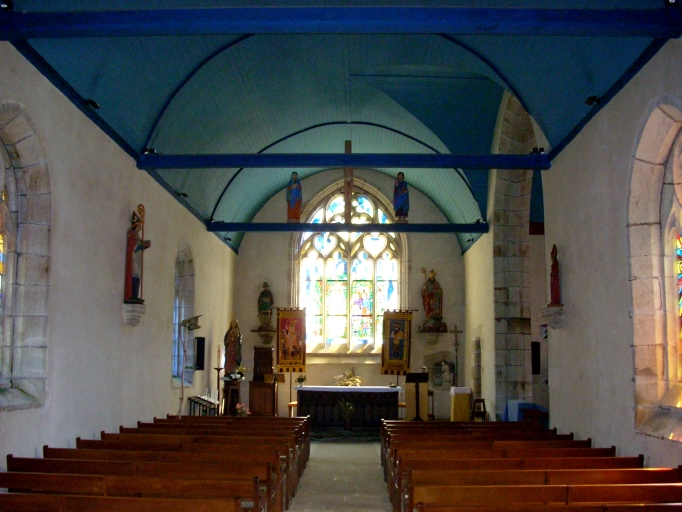 Edifice reconstruit en 1878 à l'initiative de la famille Kermel, d´après les plans de l´architecte diocésain Joseph Bigot, par l´entrepreneur Jean-Louis Le Naour. Bras sud 16e siècle.