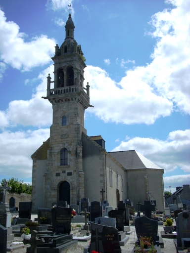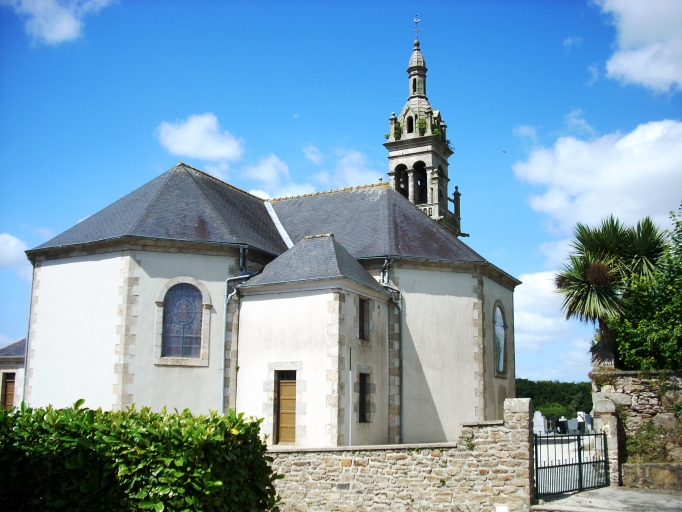 L´église a été reconstruite entre 1837 et 1838 (date sur la façade ouest), en partie grâce à l'aide financière du député Emmanuel de Las Cazes né en 1800 au hameau de Coz Castel ; elle remplace un édifice datant probablement du 18e siècle. Clocher de 1867 (date sur la tour) construit d´après les plans de l´architecte diocésain Joseph Bigot. Porte sud du 18e siècle (remploi).