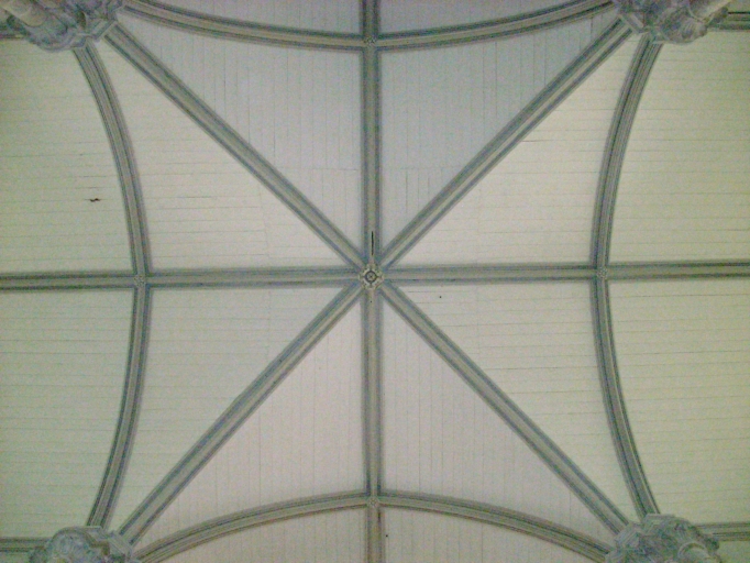 Etat sanitaire moyen : l´enduit dans le bras sud du transept se décolle ; le lambris du côté ouest est en mauvais état et des traces d´humidité et des écoulements d´eau sont visibles au niveau des baies nord. Edifice de style néogothique.