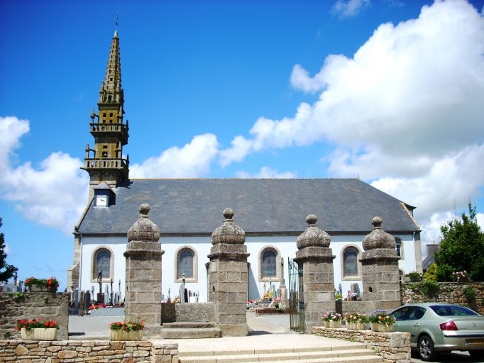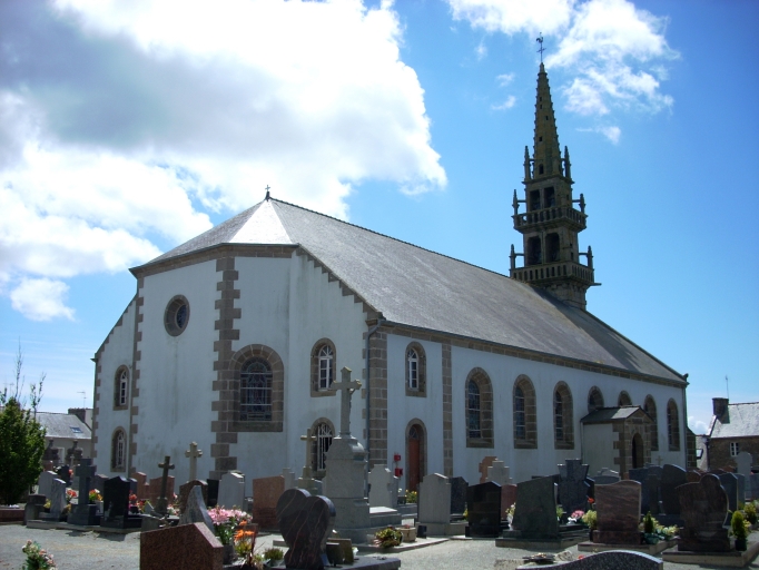 Edifice construit entre 1844 et 1845 par l´entrepreneur Le Dot d´après les plans de l´architecte diocésain Joseph Bigot faisant suite aux premiers plans dressés par l´architecte Hugo. Clocher de 1753 (date au-dessus du portail ouest).