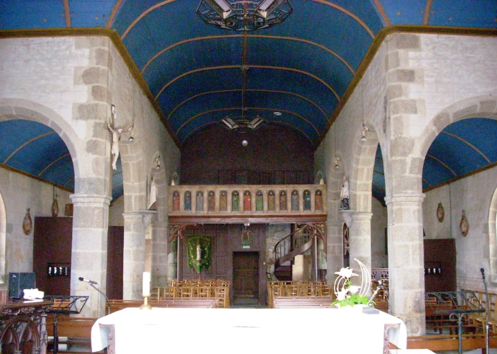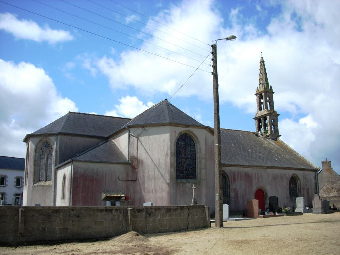 Edifice de style néogothique. Edifice situé dans un enclos avec cimetière. Etat sanitaire non satisfaisant : le lambris est en mauvais état, l´enduit se décolle et des traces d´humidité sont apparentes sur les murs nord et sud, des fissures sont apparentes au-dessus des baies sud. Clocher similaire à celui de Tréflaouénan.