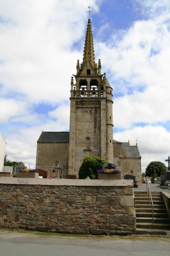Etat sanitaire correct à l'exception du lambris en mauvais état. Edifice de style néo-gothique. Edifice situé dans un enclos avec cimetière et croix de cimetière. Le clocher est semblable à celui de Guerlesquin.