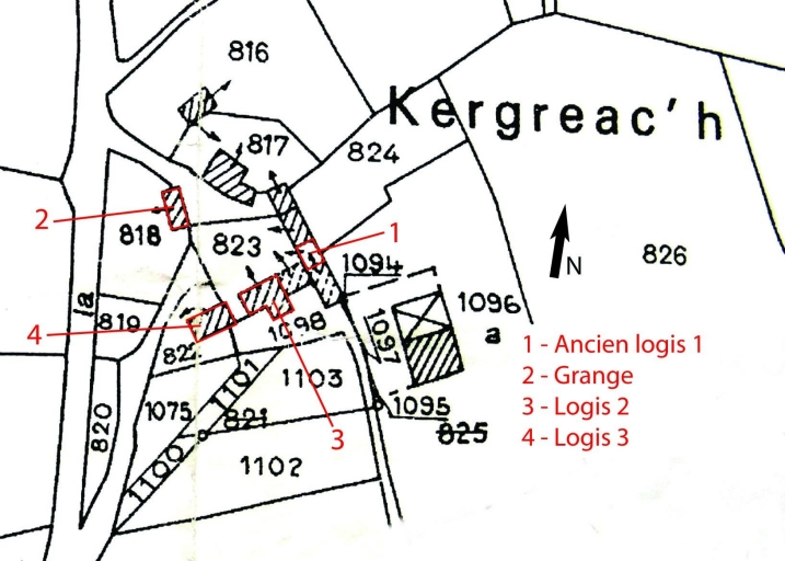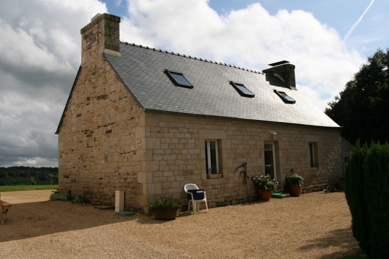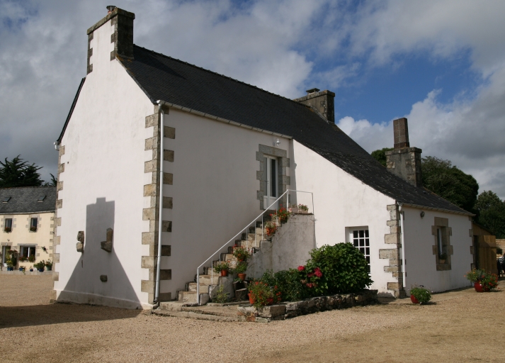 Ancien logis 1 en moellon de schiste, encadrement des baies en granite. Pignon de la grange et élévation antérieure du logis 3 en pierre de taille de granite. Logis à étage couvert d'un enduit.
