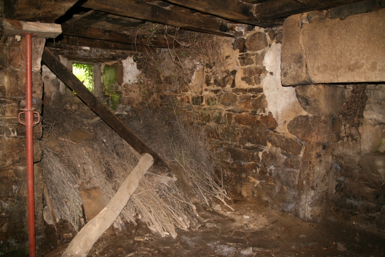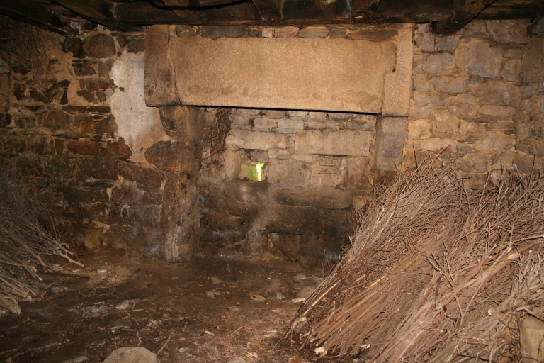 Logis abritant, sous le même toit, la salle et l'étable surmontées d'un grenier (habitat mixte). Pignon découvert à crossettes appareillées en pierre de taille de granite. Portes jumelées donnant accès à l'étable d'un côté et à la salle de l'autre. Salle avec avancée postérieure. Cheminée monumentale en granite. Four (ruinée) placée au sud.