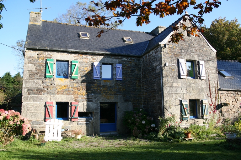 Logis 1 : à avancée, toit en bâtière ; avancée partiellement en pierre de taille de granite. Logis 2 daté 1899, en pierre de taille de granite. Logis de l'alignement en moellon de schiste, avec bandeau horizontal en pierre de taille de granite à décor géométrique gravé.
