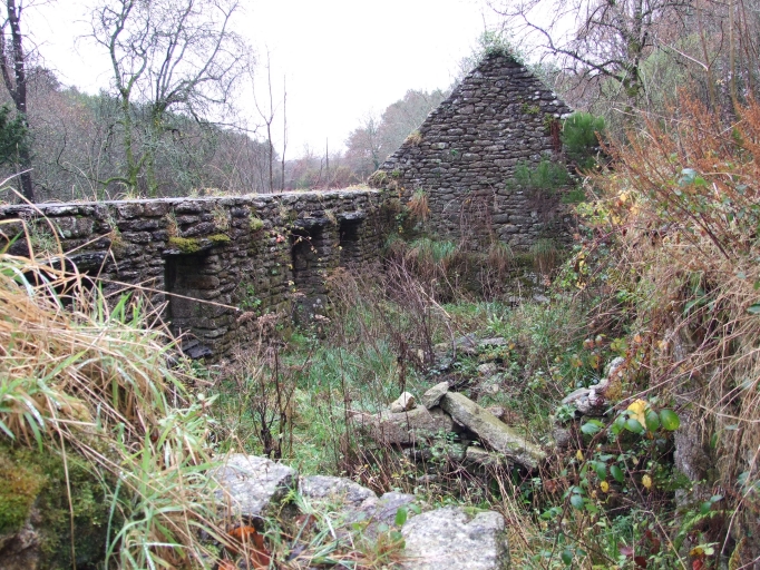 Cet ancien moulin situé en limite communale, à l'ouest de Berrien, était alimenté par un bief de dérivation pris sur le ruisseau du Fao. Le pignon nord du moulin, renforcé dans sa partie basse conserve deux ouvertures destinées aux arbres des roues : une grande roue extérieure, une petite roue intérieure secondaire, toutes deux disparues. L'emplacement d'une deuxième roue intérieure est parfaitement visible dans la seconde pièce du moulin. Deux ouvertures sont pratiquées dans le mur du fond pour les deux arrivées d'eau qui alimentaient les roues intérieures avec sorties d'eau en façade. Une dépendance à usage de soue est construite en alignement, accessible par une porte latérale percée dans le pignon sud. Construit en partie sur le roc, en hauteur, à quelques mètres du moulin, le nouveau logis du meunier en moellon de granite réunit sous le même toit logement et fonctions agricoles : la distribution croisée superpose, à gauche, l'étable et la chambre à feu, à droite, la salle et le grenier. Dans l'étable, une auge en granite est taillée dans le roc. Une dépendance ruinée est construite dans le prolongement de la ferme.