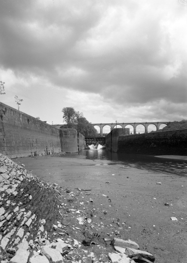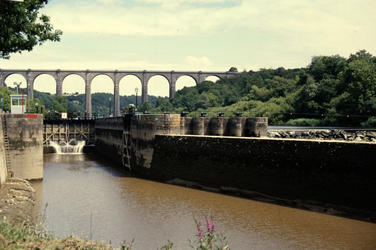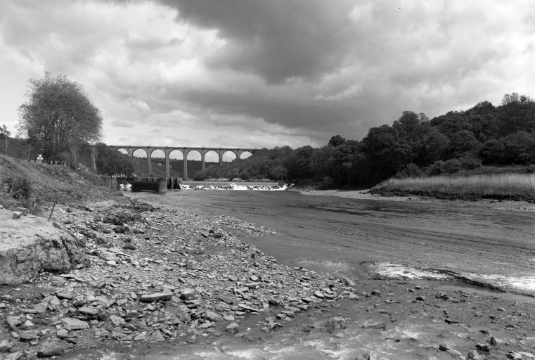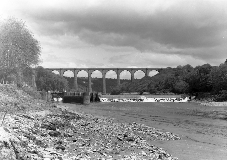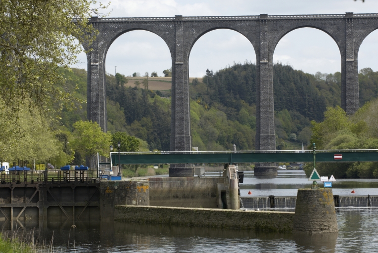 Cet important ouvrage du génie civil, en covisibilité avec une autre réalisation remarquable, le viaduc de chemin de fer, marque fortement le site de Port-Launay (C. Douard).