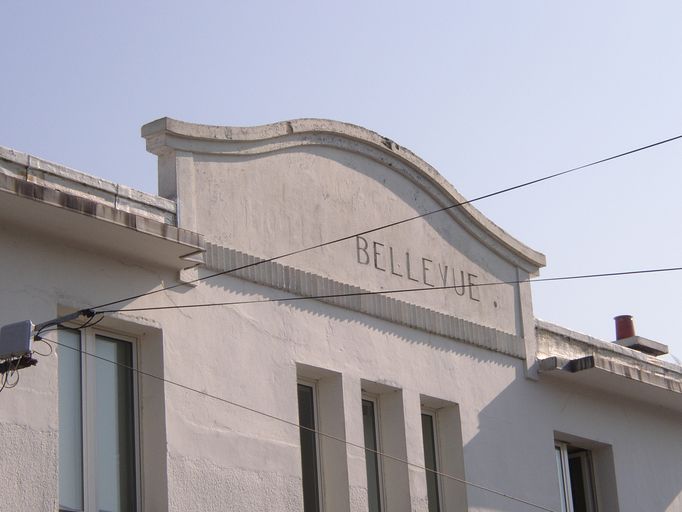 L´ancien café-hôtel Bellevue se trouve à l´entrée de la station balnéaire du Pouldu, aujourd´hui en continuité d´urbanisation. Elle s´aligne directement sur la rue qui descend légèrement, d´où la présence d´un escalier de trois marches pour accéder à la porte d´entrée. Ce bâtiment de base rectangulaire compte un étage. La façade principale, couronnée par un fronton surhaussé, est symétrique. Le rez-de-chaussée comporte deux larges baies vitrées et une porte, architecture idéale pour l´installation d´un commerce. Les ouvertures de l´étage sont plus modestes. Le fronton conserve la trace gravée Café Hôtel Bellevue, même si seule l´inscription Bellevue apparaît clairement puisque les deux autres mots ont été effacés. Du toit plat émergent deux discrètes souches de cheminée avec mitrons. Les murs sont peints en blanc. Le fronton est la seule ornementation de ce bâtiment à l´architecture simple.
