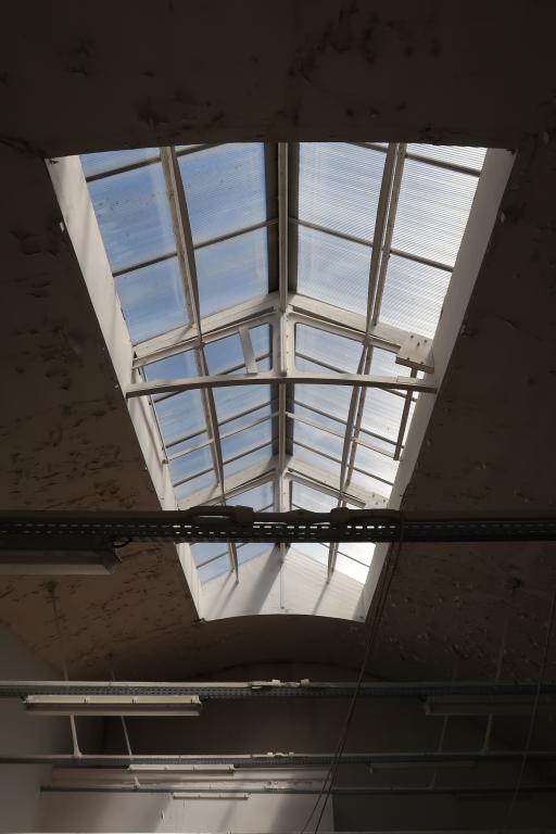 Vue de l'usine de la Villeneuve depuis l'est, vers 1875, gravure d'Auguste Tilly pour l'atelier de gravure Smeeton d'après un dessin de Pharamond Blanchard. La légende précise : "Usine de la Villeneuve. - Atelier pour le rayage des grosses pièces. - Dessin de Ph. Blanchard"