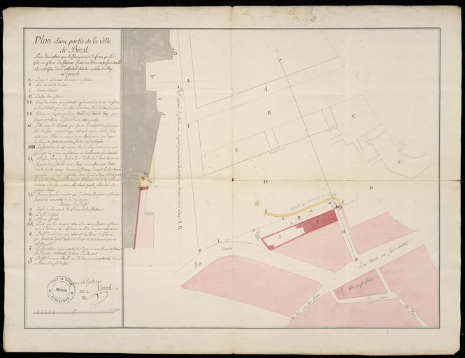 Archives du Génie, Article 8, section 1, Brest carton 1. 1VH446n°39_1700. Plan, support papier, 1e quart 18e siècle, 20 janvier 1700.