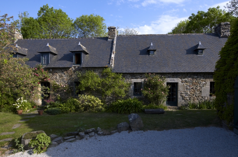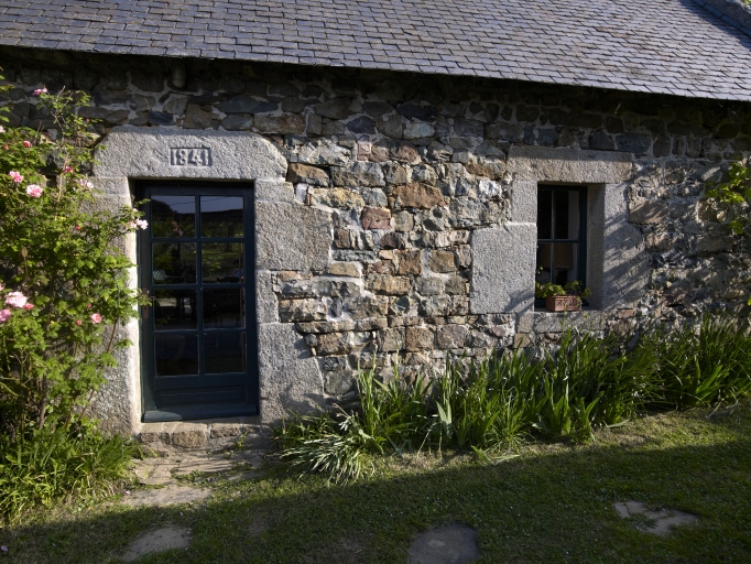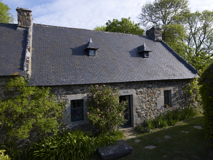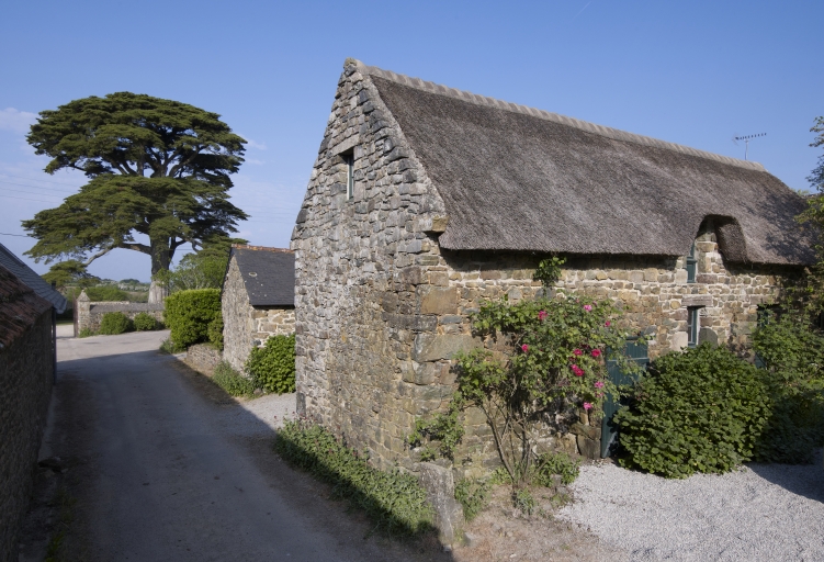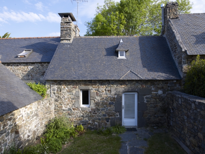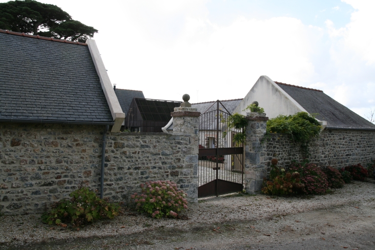 Ancien manoir à cour fermé détruit. Logis de fermes en rez-de-chaussée. Emploi partiel de la kersantite pour les encadrement des baies.