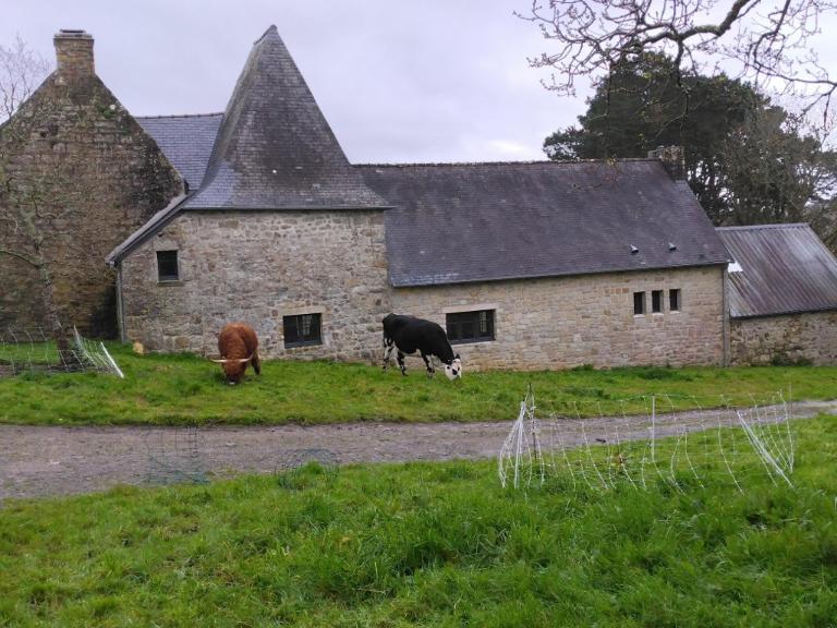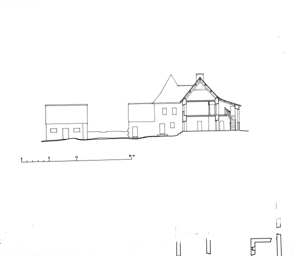 Ensemble à cour semi fermée avec verger attenant enclos de murs. Le logis du manoir comprend une salle avec cheminée et une cuisine (?) opposées perpendiculairement par un angle, reliées par la cage d'escalier située dans l'angle extérieur, couverte en appentis. Une noue relie le toit en pavillon de la cuisine au toit à longs pans de la salle. Deux pièces annexes ont été construites contre le mur nord de la salle, abritées par le prolongement du versant postérieur du toit afin de loger un escalier secondaire et un cellier (?). En face, la longue dépendance et l'orangerie (?) couverte en pavillon sont adossées au mur de clôture du verger. Un logement secondaire de plan massé, à étage, également couvert en pavillon, est construit dans l'angle sud-est de l'enclos.