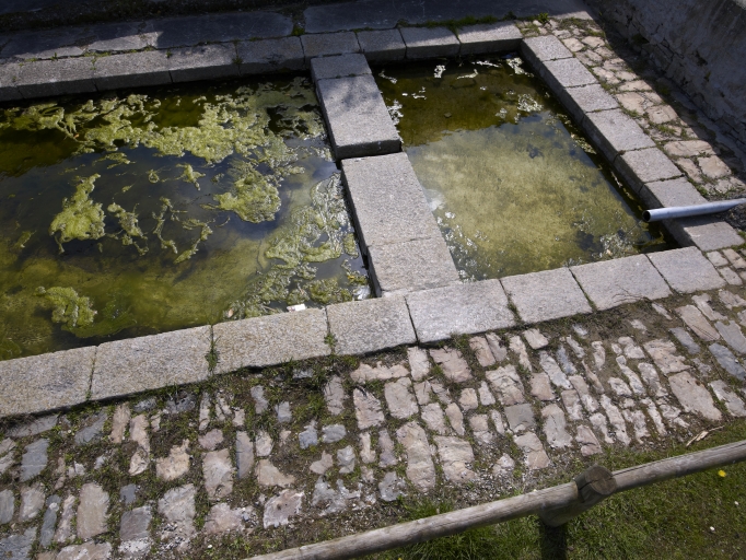 Lavoir de plan rectangulaire, appareillé en dalle de granite et constitué de deux bassins.