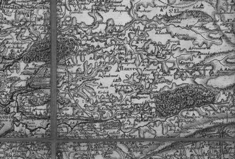La toponymie semble indiquer qu'Hanvec a constitué un centre de défrichement et de conquêtes des terres. L'importance des bois est attestée par les noms de nombreux hameaux commençant par coat, killi, cran, gars : Coat Bihan, Coatevez ; Quillafel ; Le Cranou ; bois du Gars...