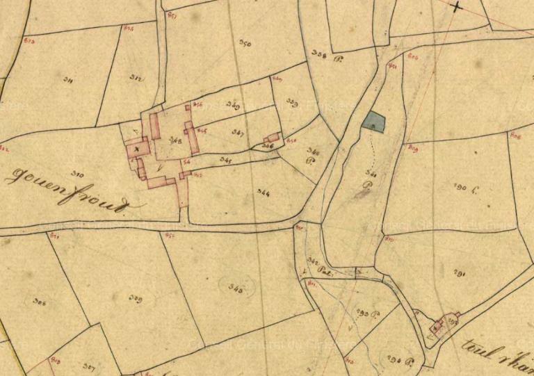 Le kanndi du Guenfrout est situé dans l'angle d'une prairie humide entre une ferme et une route communale. Un talus et une haie de noisetiers entoure le pignon orienté nord-est et la façade sud-est du bâtiment.