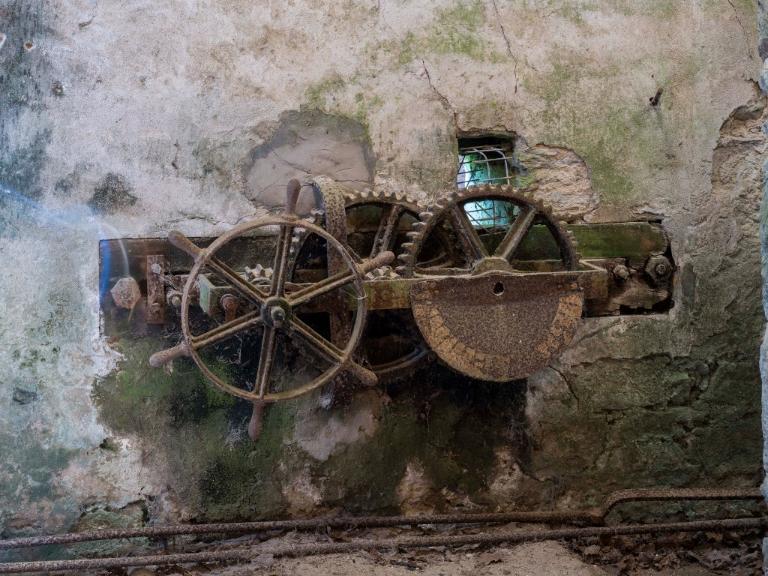 La roue hydraulique du moulin est toujours visible sur le site. Il s’agit d’une roue de poitrine de type Sagebien, du nom de son inventeur, l’ingénieur Alphonse Sagebien, qui conçoit ce modèle en 1850 avant de le mettre en œuvre à partir des années 1860, notamment dans le nord de la France. Contrairement à la roue « en dessous », la roue de poitrine canalise l’eau à mi-hauteur, dans des augets latéraux, ce qui améliore considérablement son rendement. La spécificité de la roue Sagebien réside dans l’orientation de ses pales : elles ne sont pas disposées radialement, mais inclinées de façon à ce que l’aube entre dans l’eau avec un angle d’environ 45°, optimisant ainsi la force motrice exercée par le poids de l’eau, même à faible vitesse. Ce système limite les pertes d’énergie et assure une meilleure efficacité hydraulique. La première roue Sagebien est installée à Ronquerolles (Oise) vers 1860. Celle du moulin de Pont-Pol, bien que non datée précisément, aurait été installée après 1870. À cette date, on ne recense qu’un seul exemple de son utilisation en Bretagne, à Rennes.
