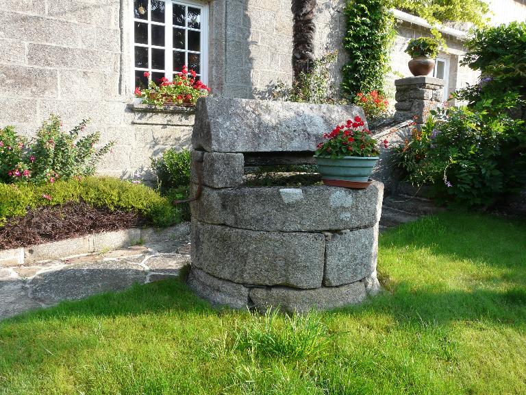 En face du logis, le puits à margelle circulaire est maçonné en pierre de taille. Il est inclus dans un jardin d'agrément, limité par des murets de clôture, et constitué en partie d'essences exotiques.