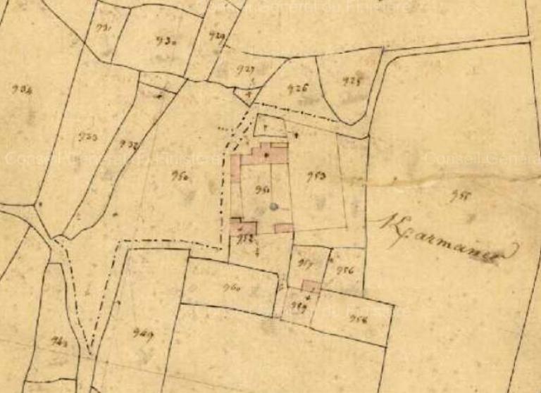 A l'est de cet ensemble bâti se trouve une parcelle rectangulaire ceinte de murs de clôture. Seuls le mur sud et une portion du mur est sont conservés.