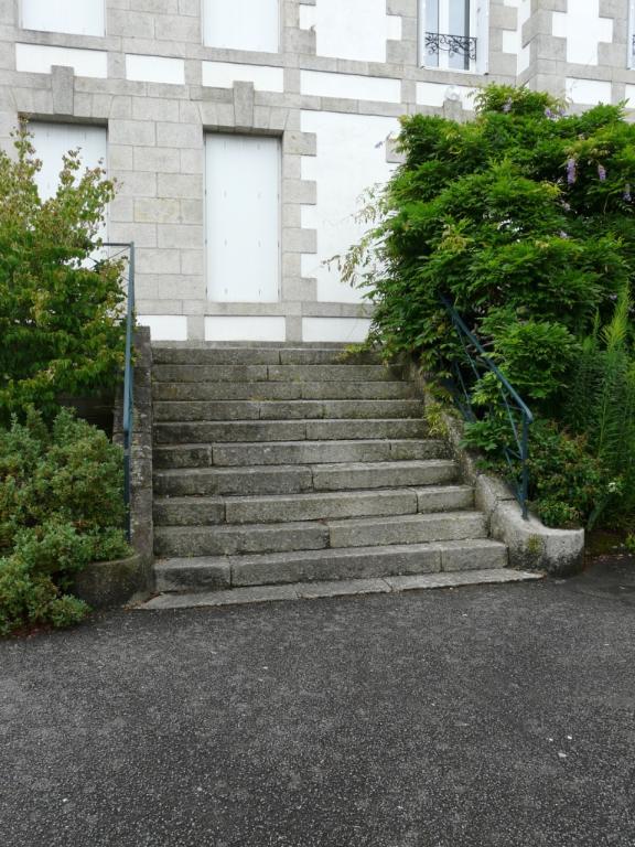 Deux piliers en pierre de taille granit marquent l’entrée dans le domaine, un portail en fer forgé devait vraisemblablement se loger entre les piliers. Un mur bahut surmonté d’une clôture en fer forgé clôture une partie de la parcelle. Par ailleurs, cette demeure était auparavant entourée d’un important écrin de verdure comme l’atteste une carte postale ancienne.