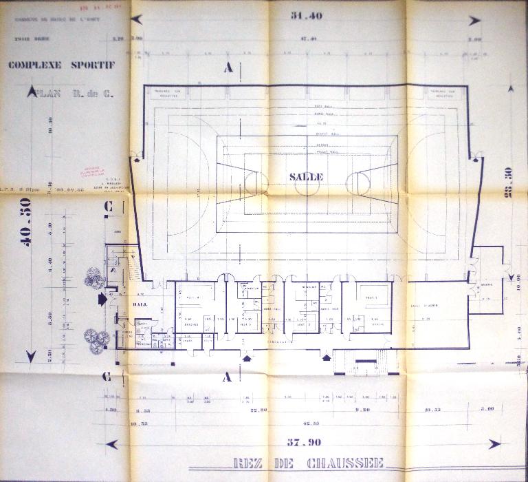 La commune de Briec s'était dotée en 1968 d'une salle de sports (localement surnommée "le bidon" ou "le tonneau" en raison de sa forme semi-cylindrique et de son revêtement métallique), construite par l'entreprise nantaise Coroller et située rue de la Résistance. Vingt ans plus tard, un nouveau projet voit le jour, rue de la Boissière. Il est confié à L. Nihouarn. Le permis de construire est signé le 2 février 1989.