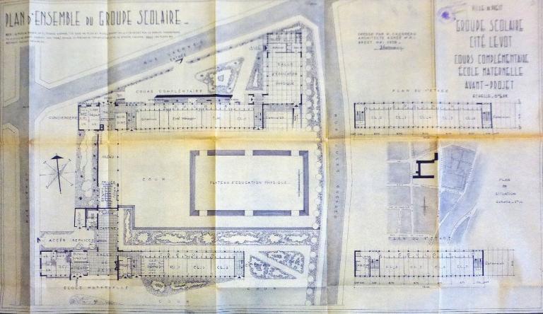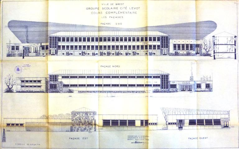 Le 21 octobre 1958, le conseil municipal approuve l’avant-projet d'un groupe scolaire comprenant une école maternelle et un cours complémentaire dans le quadrilatère compris entre les rues Levot, Jules Guesde, Sully Prud’homme et Laënnec. Le 14 mai 1962, il approuve le projet d’exécution et le programme financier de l’opération, et autorise la mise en adjudication des travaux. L’ordre de service est délivré le 14 décembre 1963 ; les travaux, commencés le 3 février 1964, sont terminés en mai 1965. La réception provisoire est prononcée le 16 juin 1965.
