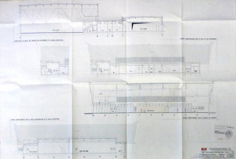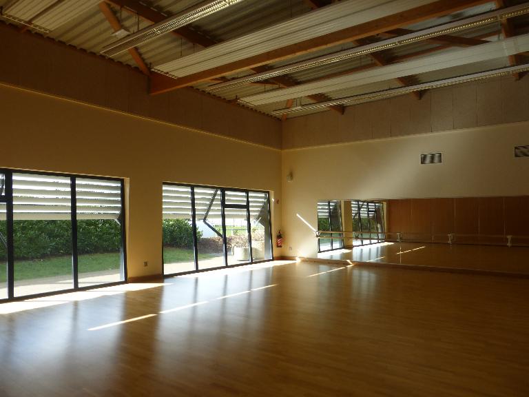 Tous les murs porteurs sont réalisés en béton banché, avec bardage double peau. Les charpentes de la grande salle et de la salle d’activités sportives sont apparentes, en lamellé collé, la couverture en bacs acier.
