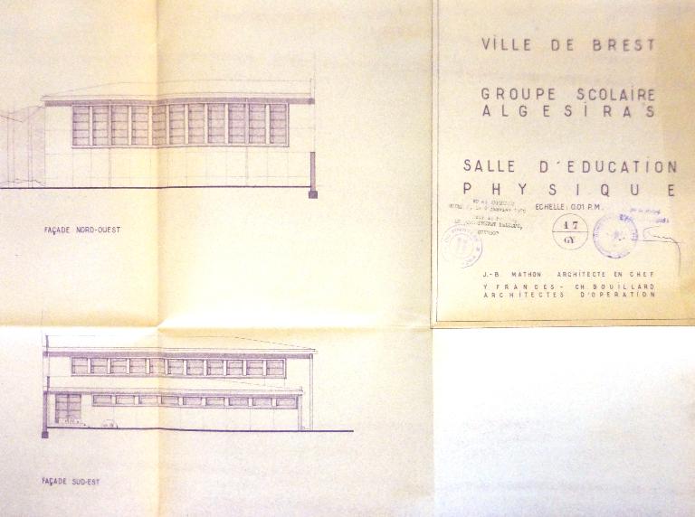 Bon exemple d'équipement sportif lié à la première commande groupée de constructions scolaires à Brest en 1960.