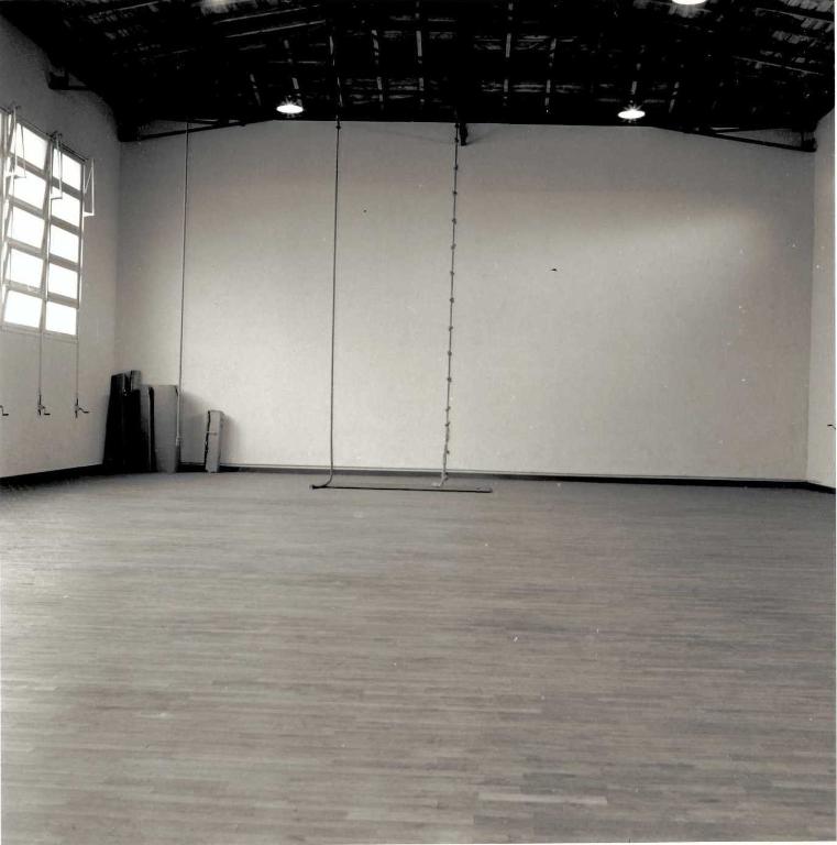 Gymnase de type A (20 m x 11,50 m) en béton enduit, avec charpente métallique et couverture en zinc.