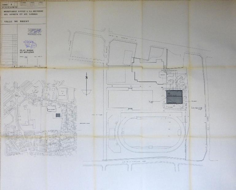 Le 18 septembre 1972, la ville de Brest pose sa candidature à l’attribution d’une piscine de construction industrialisée du type « Plein Soleil », « modèle le plus adaptable aux installations actuelles du complexe concerné », pour le complexe sportif du lycée de Saint-Marc. L'arrêté d’approbation technique est signé le 23 janvier 1974, fixant la dépense totale à 1 633 300 F. Le 15 juillet suivant, la ville s’engage à verser un fonds de concours de 1 018 300 F et, le 7 août, la convention entre la ville et l’État est signée. Les travaux débutent le 9 septembre. La réception est prononcée le 18 avril 1975.