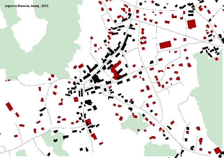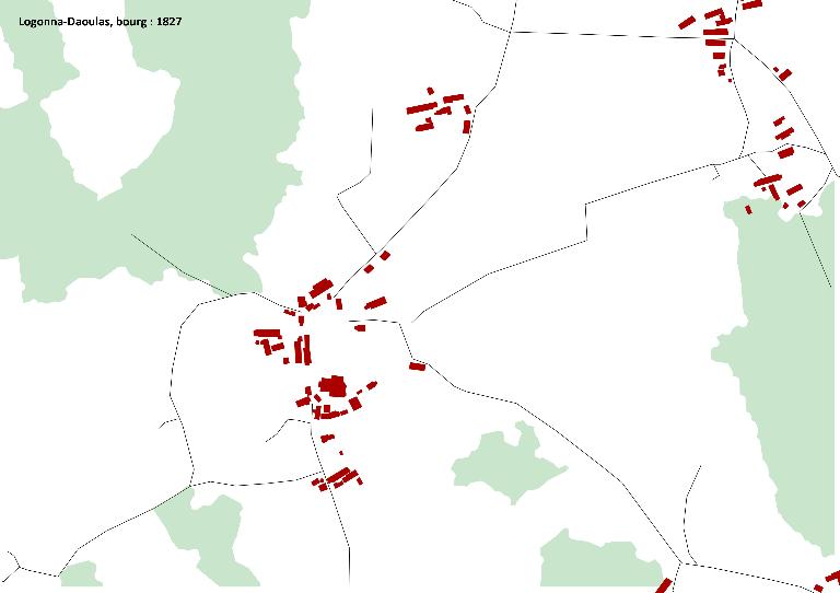 Jusqu’au milieu du 19e siècle, le bourg de Logonna est peu développé et est inséré dans un réseau de petits hameaux. Reconstruits au 17e siècle, l’église et son enclos paroissial sont entourés de différentes fermes et maisons nobles. Au 19e siècle, le bourg prend une importance considérable, et sa population augmente de 158 habitants en 1851 à près de 250 en 1906. Le bourg se développe principalement au nord, le long de la route menant à Daoulas, rattrapant les anciens hameaux à proximité immédiate.