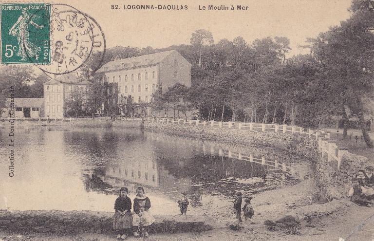 Le moulin à marée du Moulin mer était une des propriétés de la famille Rosmorduc avant la Révolution française. La description qui en est faite, avant sa vente comme bien national en 1798, indique un moulin en mauvais état : "effectivement de nulle valeur, sans toiture, charpente, fenêtres, portes et sans espèces d'ustensiles, que la maçonnerie [était] lézardée et prête à crouler" (1793-1794). Au début du 19e siècle il appartient à M. Labiche, puis après son décès en 1824, ses petits enfants, messieurs Halligon, Samson et Vignoboul font élevé "à frais communs plusieurs bâtiments pour améliorer et étendre leur exploitation", soit un moulin à vent, un grand magasin à blé en face de la cale de débarquement, une grange, une écurie, un jardin, un verger, un magasin, un hangar, une maison et le moulin (1830-1840). Moulins à céréales, le moulin à marée et le moulin à vent font travailler 6 ouvriers. En 1850, après des transformations, le moulin devient minoterie et son activité est quasi industrielle.