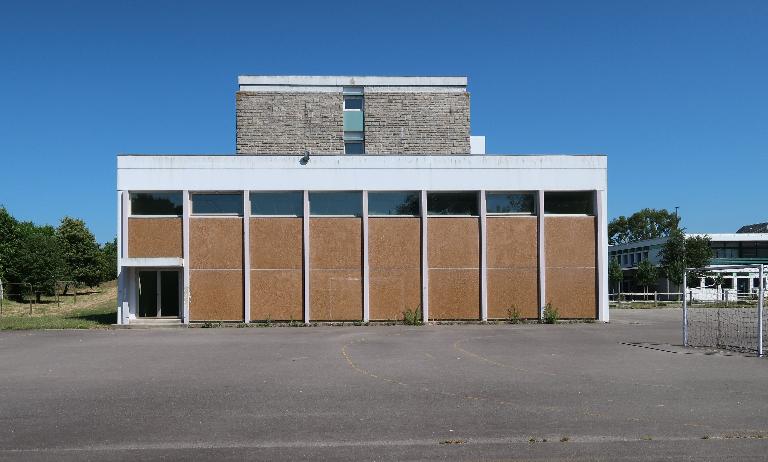 Petit gymnase scolaire du milieu des années 1960, intéressant par son revêtement mural extérieur, agrandi d'une annexe en 2004.