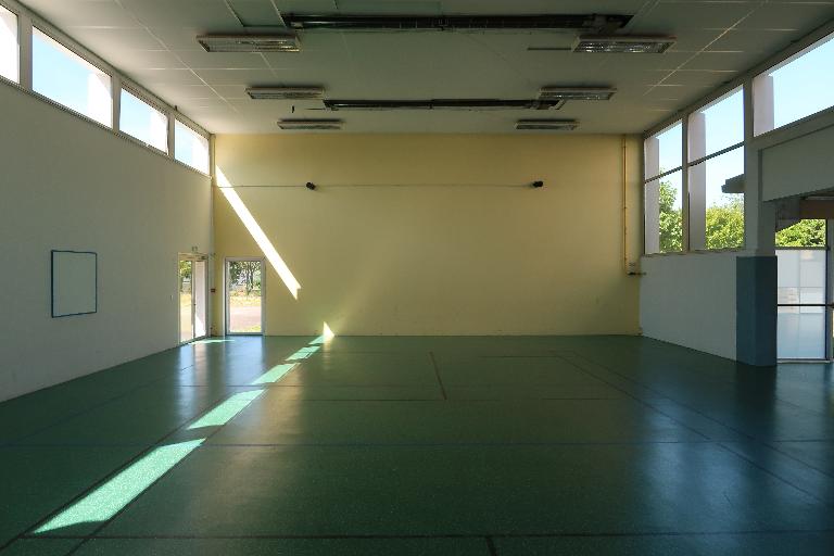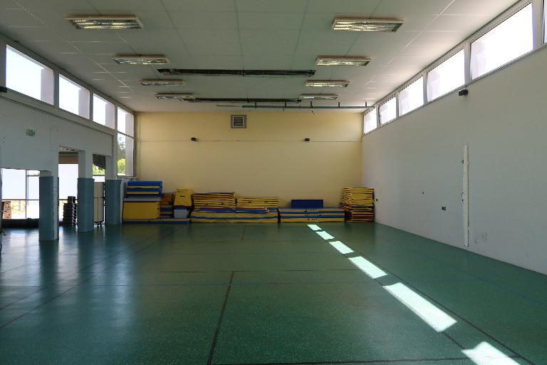 Gymnase de type A (20 m x 11,50 m) situé à l'extrémité sud des nouveaux bâtiments. On lui adjoint en 2004 une annexe construite sur l'emplacement de la galerie reliant le gymnase au bâtiment de l'internat. Le projet prévoit la mise en œuvre d'éléments préfabriqués lourds assemblés en façades dans une ossature en béton armé. Ceux-ci sont revêtus en façade sud d'une mosaïque de pâte de verre en carreaux de 22 mm, formant le parement extérieur.